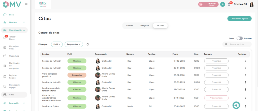 Consulta y gestiona todas las citas de tu farmacia, tanto de clientes como de delegados, desde un único lugar.